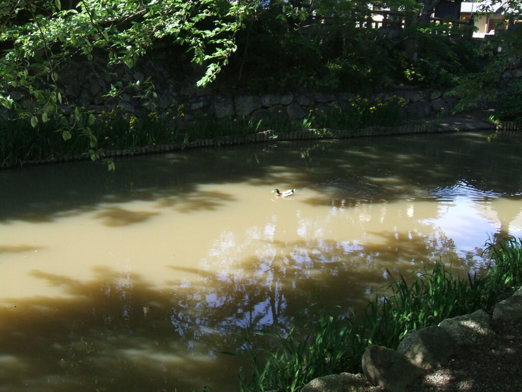 堀沿いの道を歩いていると、堀の中でゆったりとカモが泳いでいたりします。