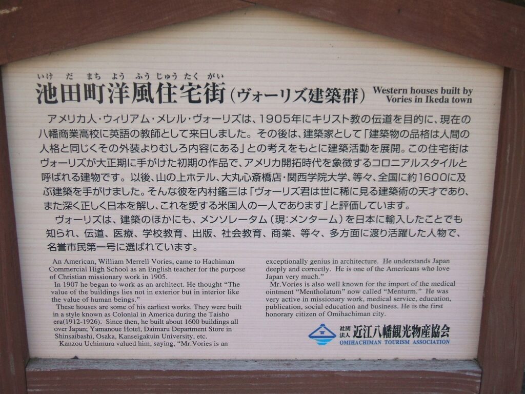 1910年代、彼はキリスト教の宣教活動のために近江八幡に移り住み、仲間たちのための住居群をこの池田町に建てました。