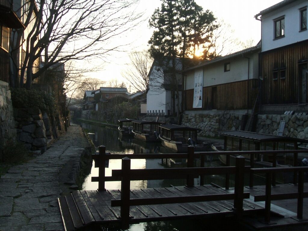日が傾きはじめると、八幡堀の水面がゆっくりと橙色に染まっていきます。
