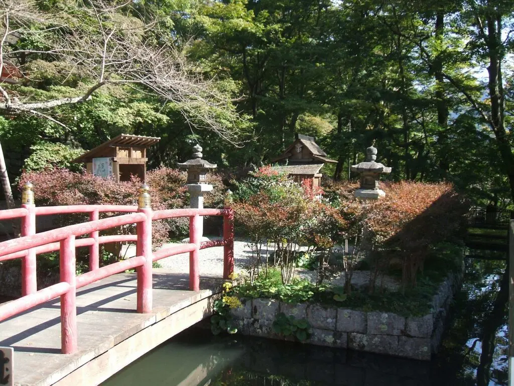(左から)権殿、十三重塔(神廟)、そして神廟拝所が静かに並び、山の空気の中に溶け込むように佇んでいます。紅葉にはまだ少し早かったのか、木々は色づく気配をほんのりと纏うだけで、秋の訪れを静かに待っているようでした。