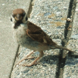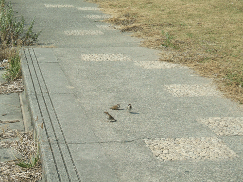 ぼんやりと対岸の岸辺を眺めていると、一匹のスズメが私の足元へと近づいてきました。