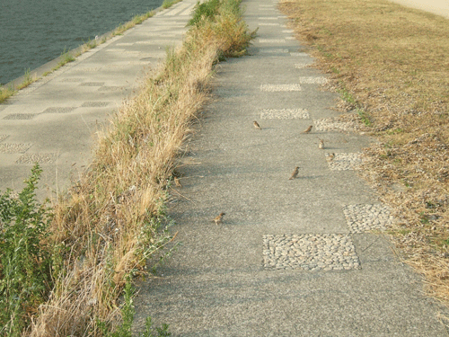 武庫川の静かな河川敷で、 スズメたちが私のまわりをちょこちょこと歩き回る光景は、 どこか現実離れしていて、 それでいて不思議と心が温かくなる時間でした。