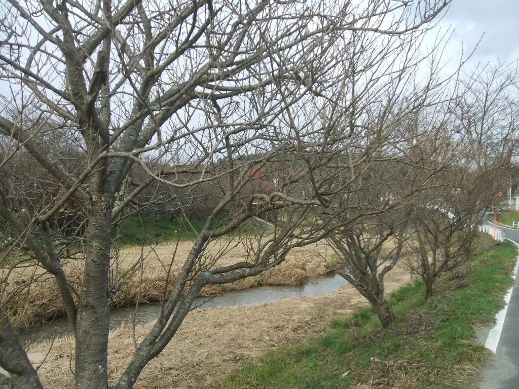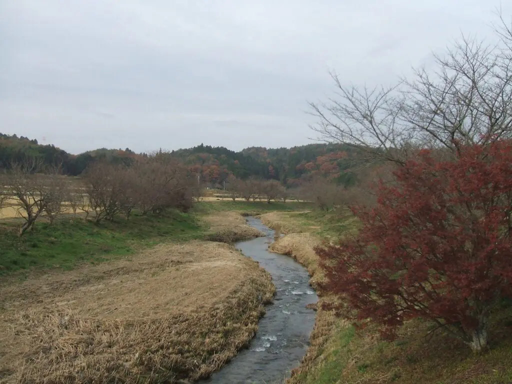 季節はすでに晩秋。肌に触れる風は少し冷たく、吐く息が白くなっていました。道の脇には葉のない枝木が立ち並び、流れる小川は勢いを失い、どこか寂しげな音を立てながら流れていきます。その水音が、山里の静けさをいっそう際立たせているようでした。