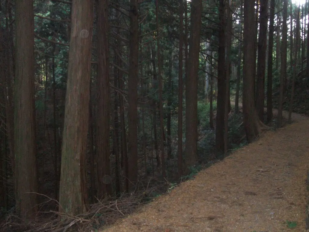 杉の幹はまっすぐ天へ伸び、枝葉が密に重なり合っているため、昼間でも薄闇が漂っていました。