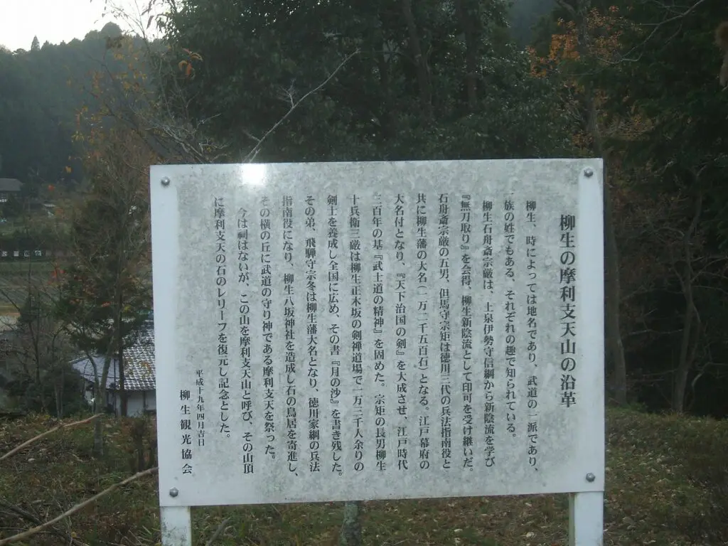 八坂神社の近くには、こぢんまりとした小高い丘があり、地元では 摩利支天山 と呼ばれています。 柳生八坂神社を創建した柳生宗冬が、武道の守り神である摩利支天をこの丘に祀ったと伝わっています。