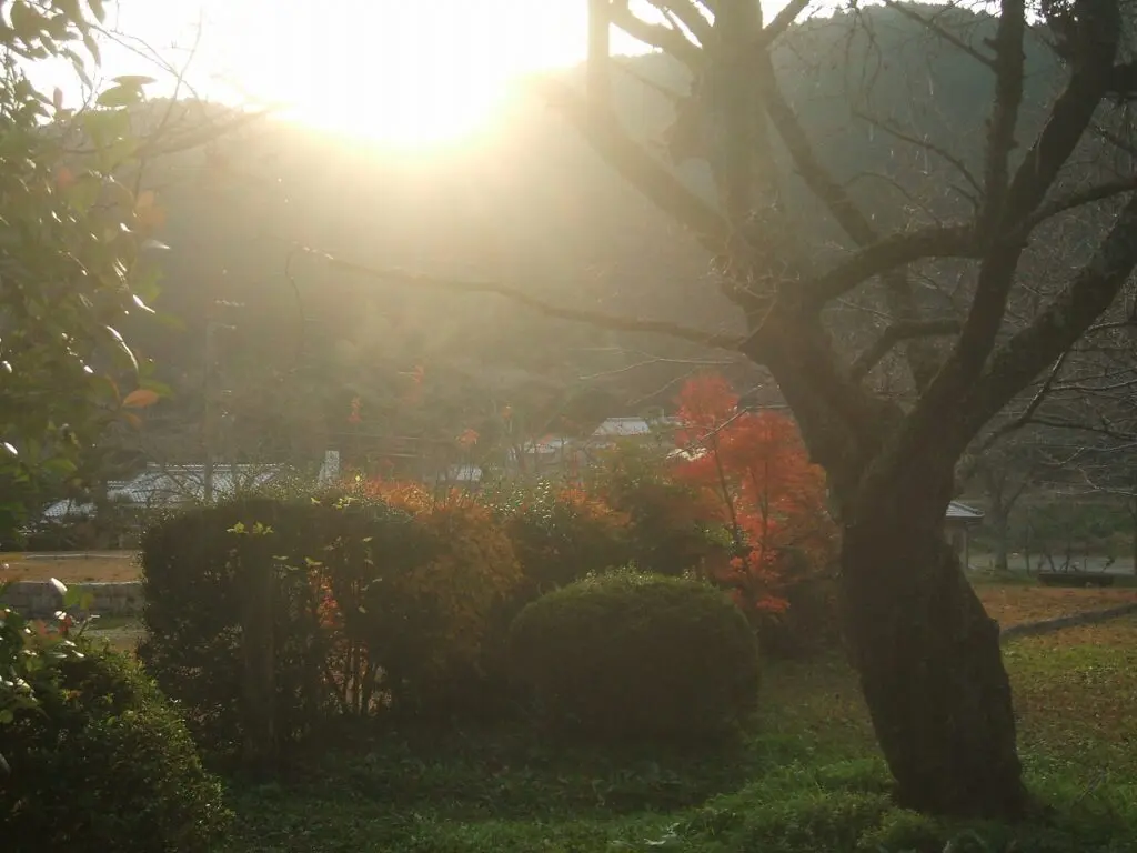 そのせいか、山里の風景が驚くほどすっきりとしていて、紅葉した山の稜線や、刈り取りを終えた田んぼの広がりが、まるで絵巻物のように素直に目に飛び込んできます。