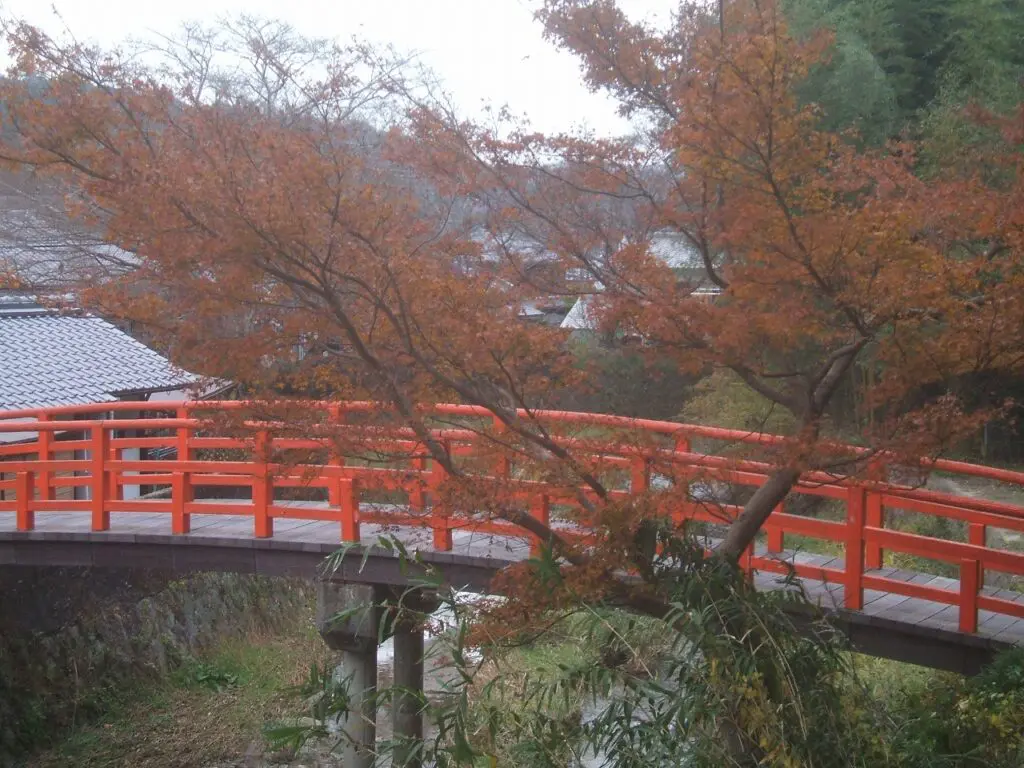 芳徳寺の麓に差しかかると、ひときわ目を引く赤い橋が見えてきます。 その名も「もみじ橋」。 ちょうど紅葉の時期に訪れたこともあり、名前にふさわしい鮮やかさで、周囲の景色の中に美しく溶け込んでいました。