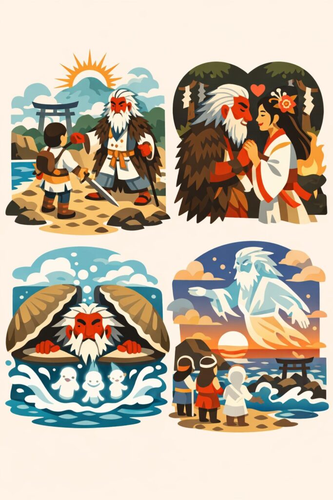 その性格は、神話全体を通して「境界の神」としての働きに結びつきます。天と地、神と人、海と陸といった異なる領域の境界に立ち、そこを通過する者を導き、あるいは見守る役割を担います。これは後世の道祖神・塞の神信仰へと自然に連続していきます。