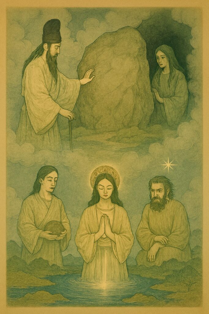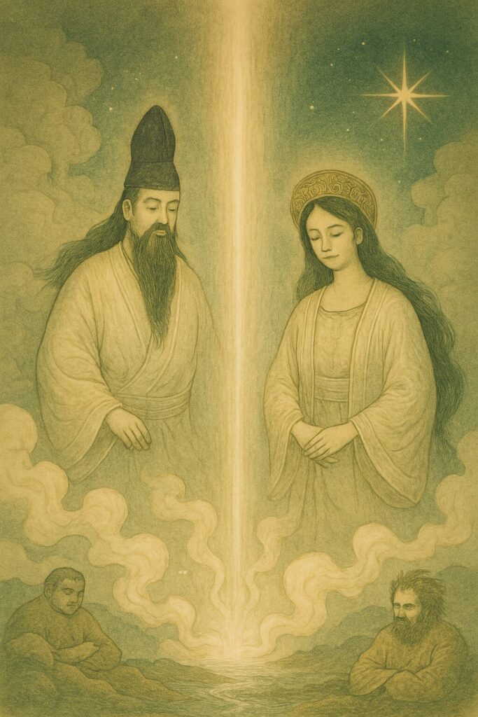 天地がまだ定まらず、光も闇も混じり合っていたころ、世界はまるで胎内のように静かで、どこか温かい気配に満ちていました。