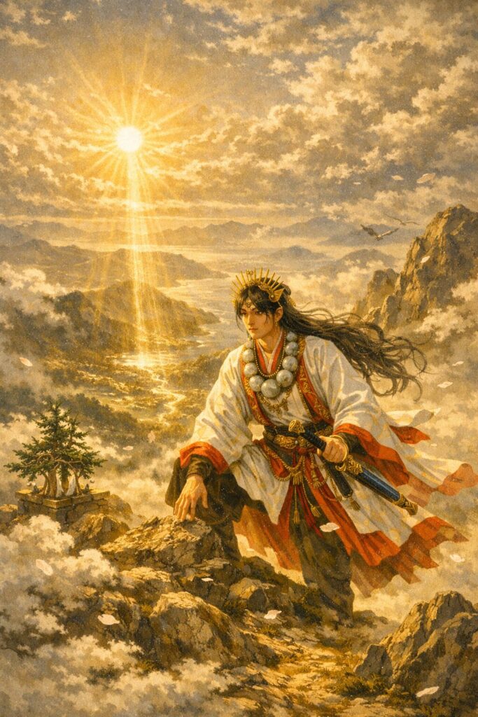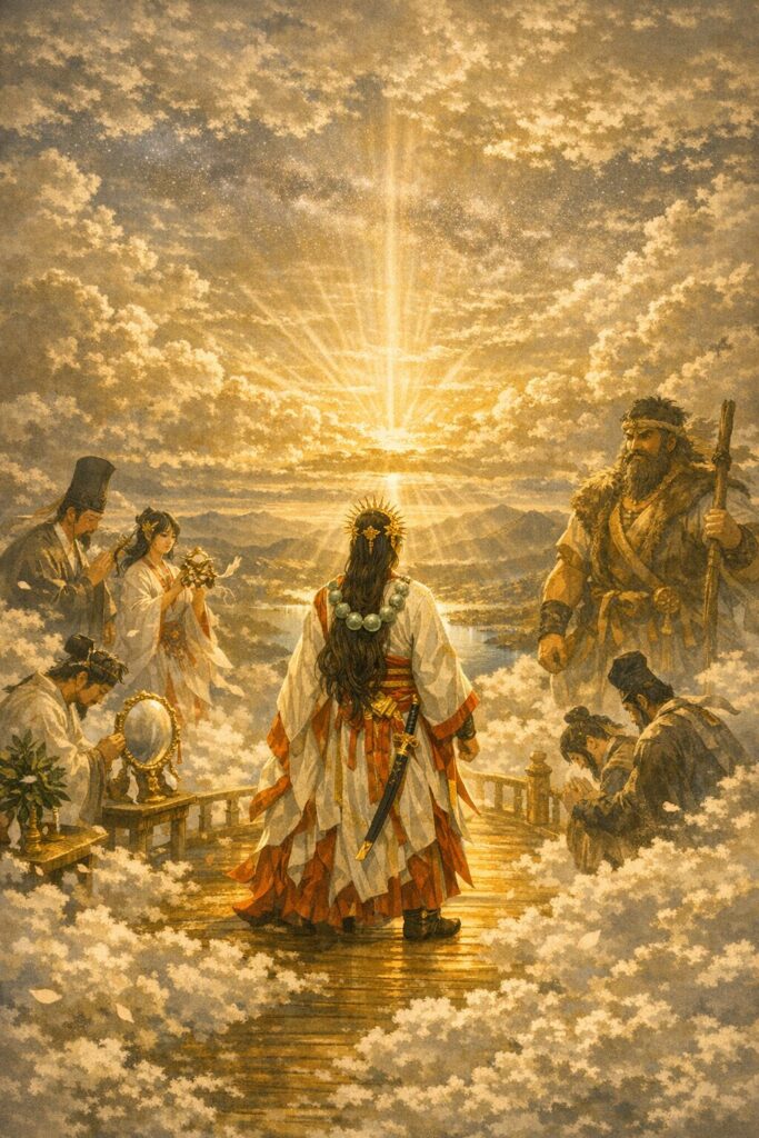 天照大御神の呼びかけに応じて姿を現した邇邇芸命は、