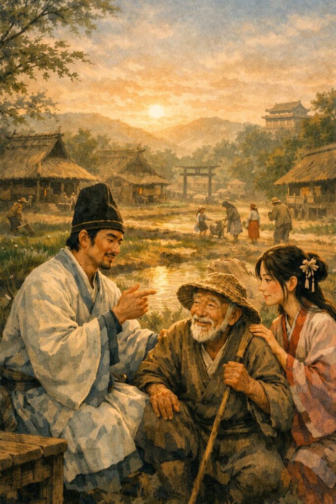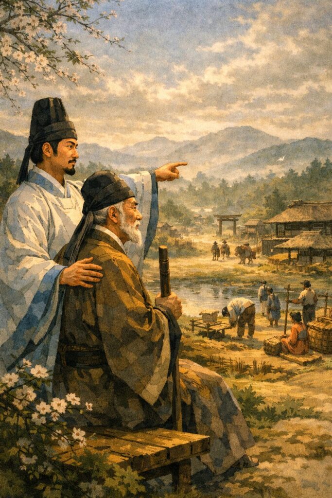 傍らに控えていた老臣・武内宿禰が、そっと声をかけます。